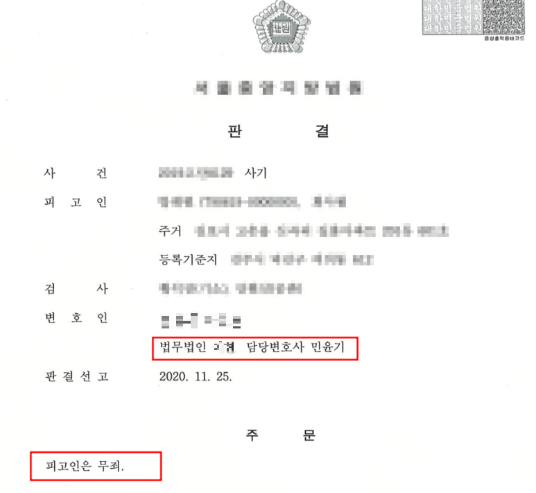 아직 저에 대해 잘 모르시거나 사건을 믿고 맡길 확신을 가지고 싶으신 분들을 위하여 오늘 제가 직접 담당했던 사기죄 무죄 사례에 대해서 소개해드리고자 합니다.