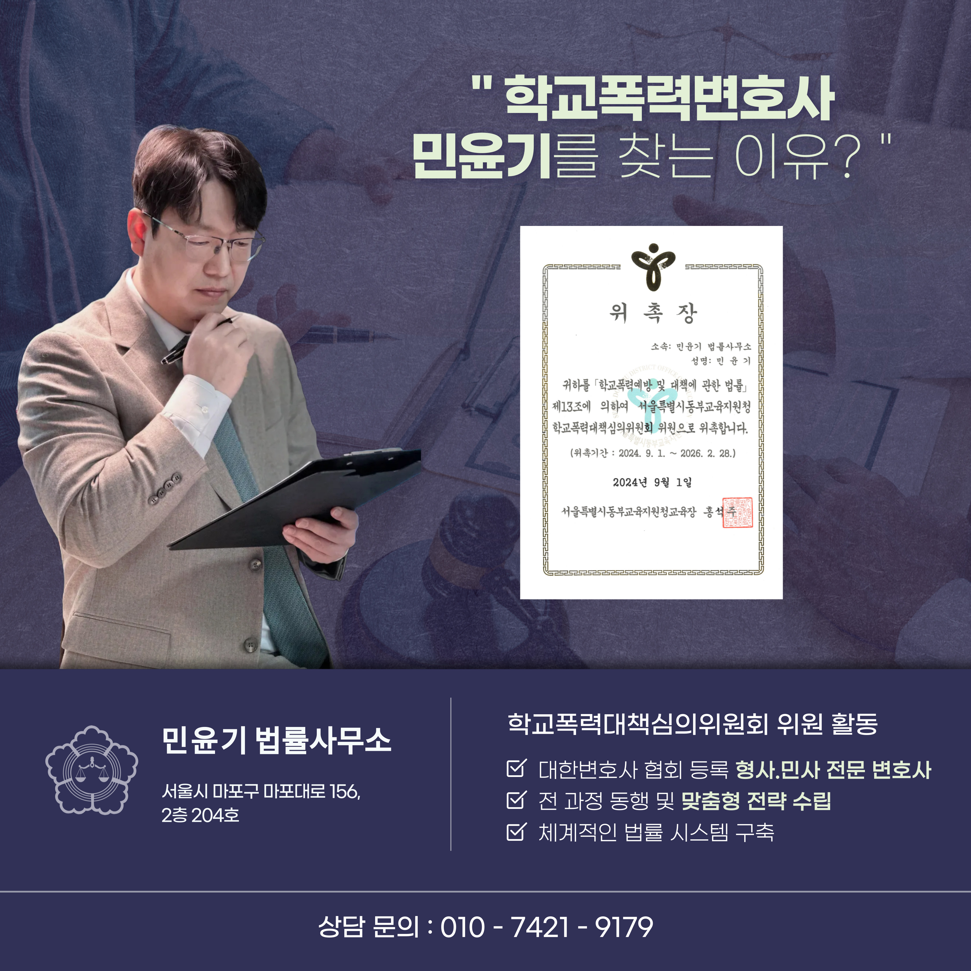 안녕하세요? 서울학교폭력전문변호사 민윤기입니다.