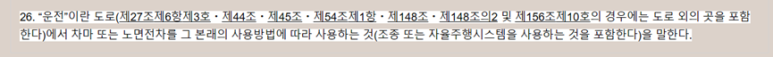 그러나 2010년 도로교통법의 개정으로 인하여 운전에는 '도로 외의 곳'도 포함되었습니다.