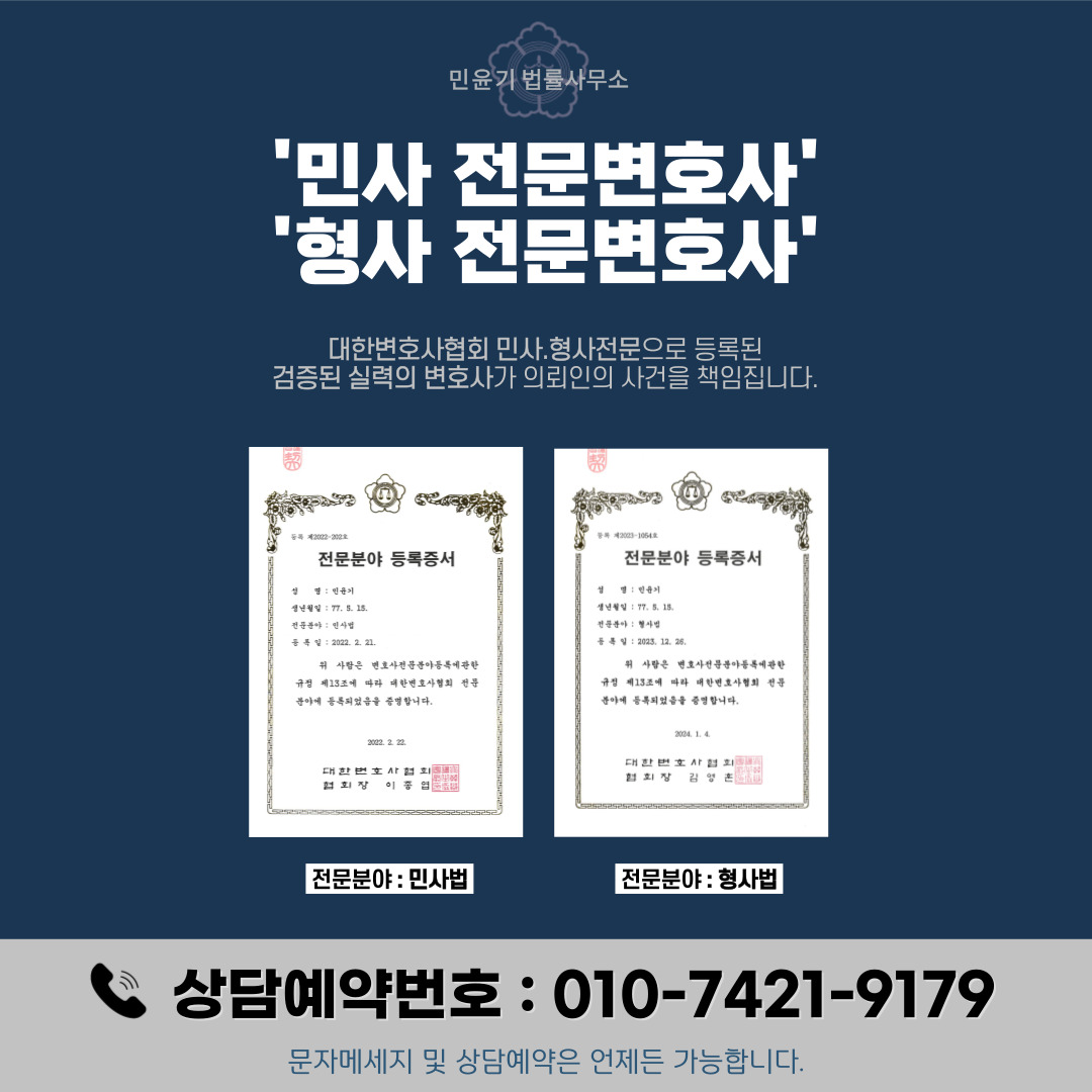 따라서 사무실에 변호사가 직접 사건을 처리하는지, 의뢰인과의 소통을 중시하는지, 대한변호사협회에 정식 등록된 전문변호사가 맞는지, 해당 사안에 승소사례가 있는지 등을 면밀히 따져보신 후 변호사를 선임하실 것을 추천드립니다.