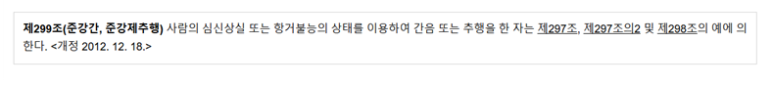 그리고 우리 형법 제299조에는 준강간죄에 대하여 규정되어 있습니다.