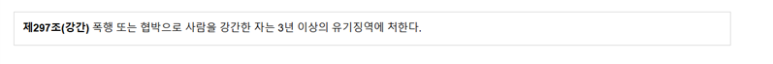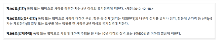 위에서 언급한 준강간이 사람의 심신상실 또는 항거불능의 상태를 이용하여 간음을 한 경우에 처벌되는 범죄라면 강간죄는 폭행 또는 협박으로 사람을 강간한 경우에 처벌받는 범죄입니다.